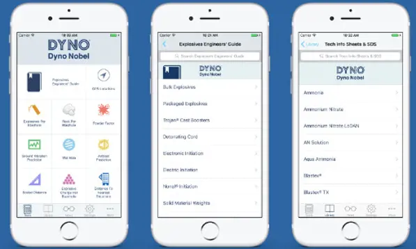 Dyno Nobel’s Explosives Engineers’ Mobile App equips users with the full range of blasting tools.